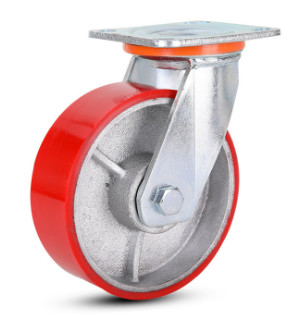name : 6 inch swivel cast iron core red PU heavy duty caster